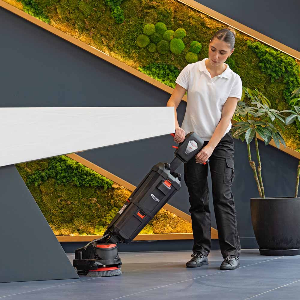 Kompaktowy, akumulatorowy automat szorująco-zbierający, który zastępuje mopowanie. Zapewnia do 120 minut pracy bez kabla i idealnie czystą, suchą podłogę w jednym przejeździe. Idealny do biur, hoteli, sklepów i gastronomii.